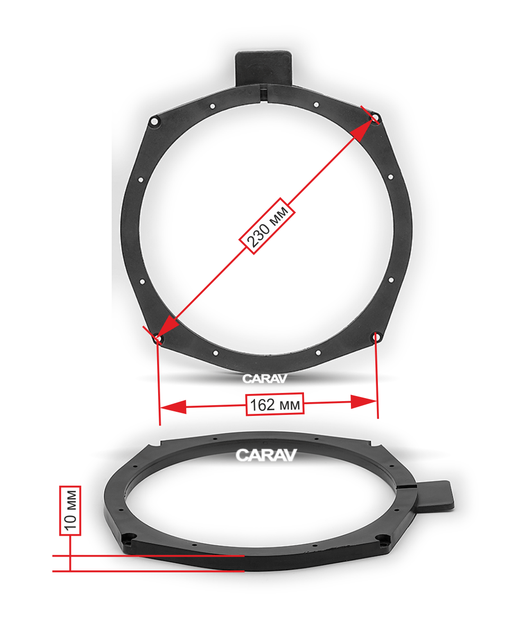 Простановочные кольца Carav 14-028 дают возможность установить динамики под размер 8" / 203 mm. Плюс ко всему при использовании проставочных колец полностью исключается вероятность появления посторонних шумов и скрипов при воспроизведении мелодий.