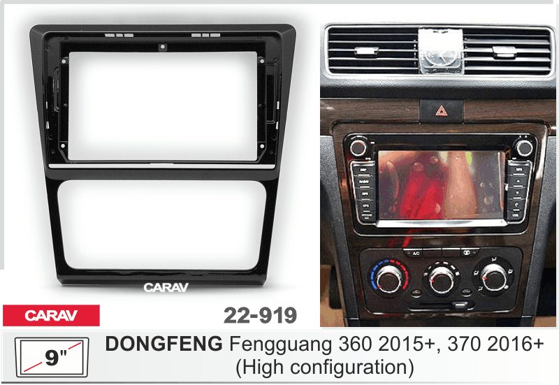 Переходная рамка Carav 22-919 требуется для установки универсальных магнитол 9" с размером автомагнитолы 230:220 x 130 mm вместо штатных в автомобили: