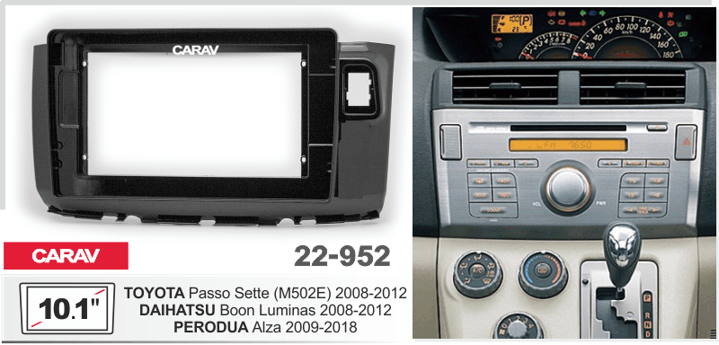 В автомобилях DAIHATSU, PERODUA, TOYOTA независимо от их модели и года, владельцы часто встречаются с проблемой: купленая автомагнитола под размер 2 DIN, оказывается не соответствует размер в центральной консоль, так как приборная панель больше стандартного размера 250:241 x 146 mm, или не подходят параметры бортовой сети этих автомобилей в годах выпуска 2008-2012, или например дополнительные функции, кнопки на руле в Boon Luminas, могут работать некорректно. Но это вовсе не значит, что штатная магнитола установленная заводом-изготовителем в вашем автомобиле не может быть заменена на другую — более функциональную и с другими аппаратными характеристиками.